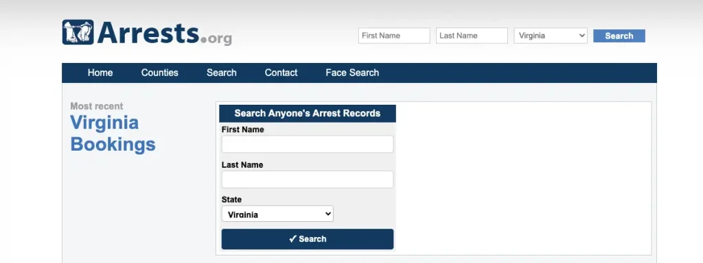 - Access the Site: Start at arrests.org – spot the prominent search bar on the homepage for instant Virginia arrest records lookup.